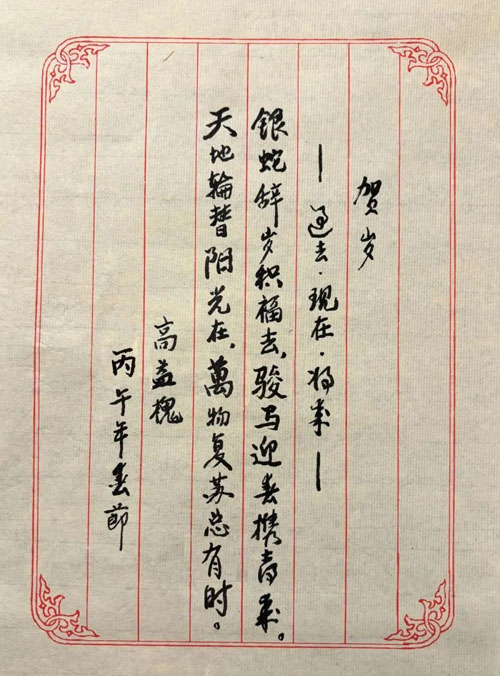 诗中,“银蛇”辞别己巳旧岁,“骏马”迎来丙午新春,寓意安发将积蓄能量,在万物复苏的时节把握新的发展机遇。