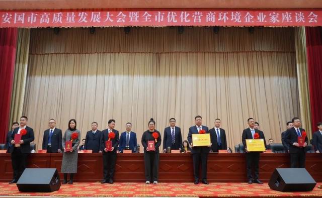 3月2日,安国市高质量发展大会暨全市优化营商环境企业家座谈会隆重召开,市委、市政府主要领导,各部门负责人及全市重点企业代表出席会议。会上,全市多家先进集体和个人受到表彰,以榜样力量激发市场主体干事创业的内生动力。金木集团凭借在中医药大健康领域的深耕坚守与创新成果,获评“高质量发展先进集体”荣誉称号,成为行业引领类先进集体的核心代表。