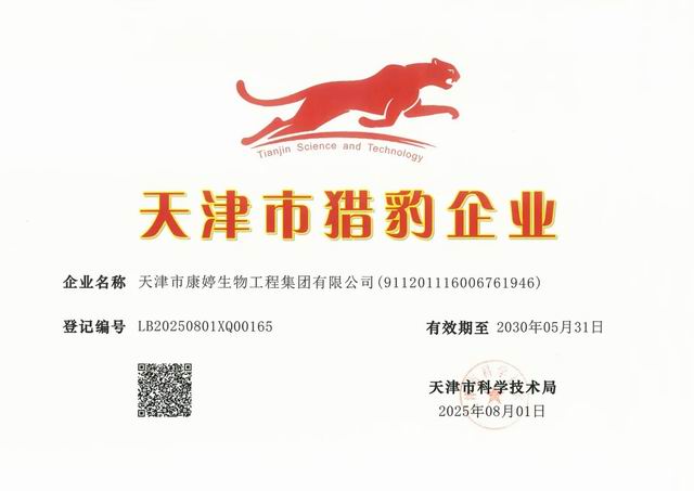 2025年8月,康婷集团成功入选“2025年天津市猎豹企业”。这一殊荣不仅是对康婷科技创新实力的高度赞誉,更是其在大健康产业持续深耕、引领行业变革的有力见证。这些成果的背后,是康婷集团对品质的执着坚守,对创新的不懈追求,更是对“专注健康、关爱生命、造福人类”使命的生动诠释。