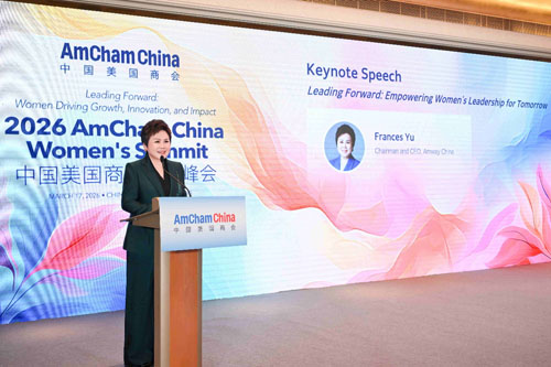 3月17日,由中国美国商会主办的2026女性峰会在北京举办。中国美国商会主席James Zimmerman,中国美国商会会长何迈可,安利(中国)董事长兼总裁、中国美国商会职业女性委员会联席主席余放,高通、雅培、强生等多家企业女性代表和商界领袖出席,共同探讨女性成长、发展、领导力、推动经济社会变革等议题。