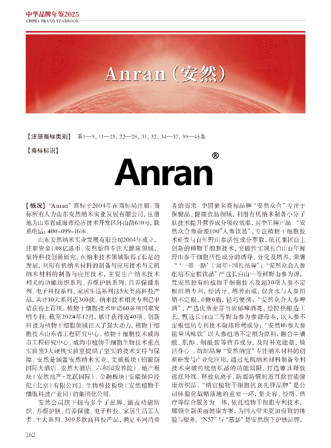 《中华品牌年鉴2025》内文关于安然品牌的介绍