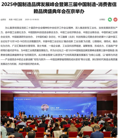 尚赫公司被纳入“2025中国制造·消费者信赖品牌”