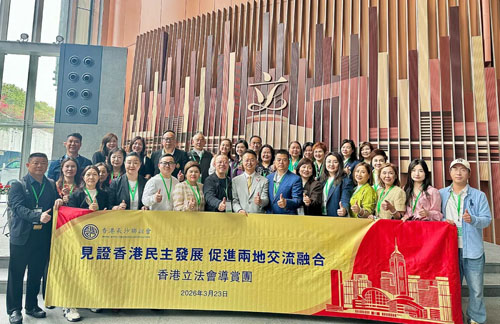 为进一步加深香港长沙联谊会骨干会员对香港立法机构历史变迁、运作机制的了解,亲身体验香港民主法治建设成果,增进会员对特区政治体制的认知,搭建民间团体与立法机构的沟通桥梁,厚植家国情怀,2026年3月23日,在香港长沙联谊会会长、绿之韵集团董事长胡国安,荣誉创会会长张晓琴、名誉会长秦薇婷、常务副会长兼秘书长蔡达等带领联谊会会员代表、香港启邦律师事务所律师等共40余人,走进香港立法会综合大楼,开展“见证香港民主发展 促进两地交流融合”主题参访活动。活动得到了香港立法会洪锦铉议员的热烈欢迎和全程亲自导赏。