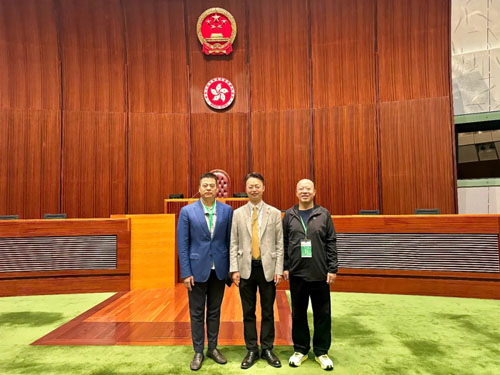 走进香港立法会综合大楼一楼大厅,首先映入眼帘的是一个醒目的“立”字,正是香港立法会制定法律、确立规则、建立法治秩序的核心要义。香港立法会洪锦铉议员在这里热烈欢迎香港长沙联谊会胡国安会长一行的到来,并勉励大家在凝聚乡亲力量、维护香港繁荣稳定、促进湘港两地经贸文旅合作共赢上继续发挥积极作为。随后,洪议员同大家一起在专业导览员引导下,沉浸式探访立法机构核心场所,细致了解香港立法机构的百年发展历程、立法会综合大楼建设,以及立法会议员的日常履职与议事工作,近距离感受香港特区依法施政的良好氛围。