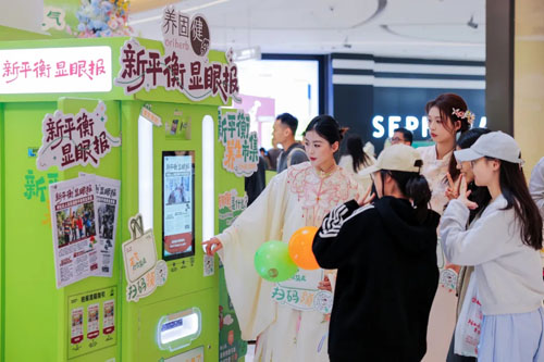 两个姑娘举着刚出炉的报纸,一个说:“快看,神秘大人物亮相新平衡养生市集!”另一个立马掏出手机:“别动,我先拍个照发群里。”