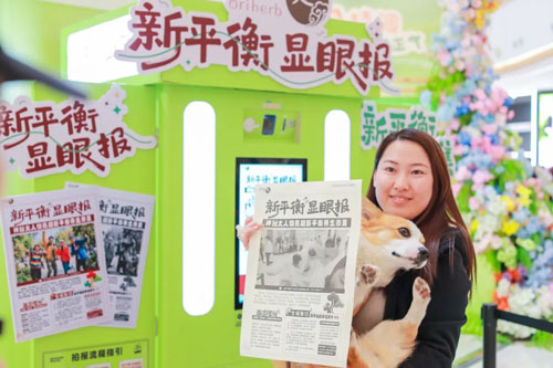 对着屏幕自拍一张,点一下,几秒后——一份《新平衡显眼报》就出来了。头版头条印着刚刚拍下的笑脸——不管是单人独照还是和朋友们的搞怪合照,都被定格在这份专属报纸上。