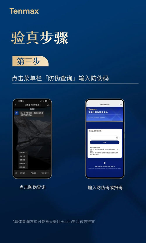 本次升级后,“天美仕health生活”公众号为唯一指定查验入口,请务必通过此官方途径核实产品真伪,保障自身权益。
