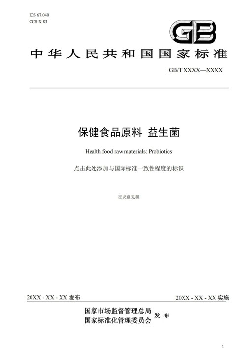 4月1日消息,根据国家标准化管理委员会下达的计划,由全国特殊食品标准化技术委员会(SAC/TC 466)归口的《保健食品原料 益生菌》(下称标准)和《保健食品中硫酸软骨素的测定》2项国家标准近日公开征求意见,意见反馈截至5月29日。