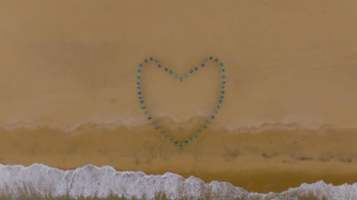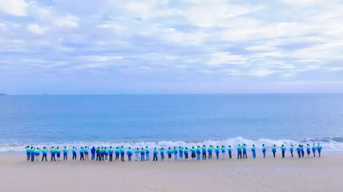 在南澳岛的海岸线上,春芝堂全体党员牵手围筑成“心”形,代表着春芝堂人“初心所向,同心所聚”