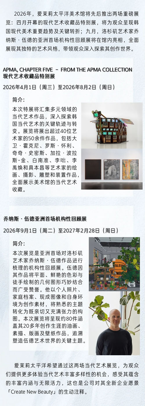 爱茉莉太平洋美术馆将于2026推出两场展览