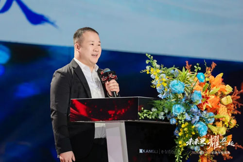 康力集团董事长郑少东先生在盛典上发表了题为《为健康而努力》的主题演讲。他回顾了2025年康力集团的亮眼成绩,并重点阐释了康力的“产品双引擎”战略: