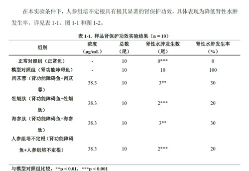 肾保护功效上,人参组培不定根与牡蛎肽功效相当,是肉苁蓉和海参肽的1.5倍。