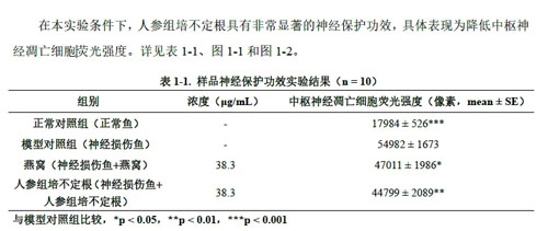 神经保护功效上,人参组培不定根表现卓越,功效优于燕窝,具体表现为降低中枢神经凋亡细胞荧光强度。