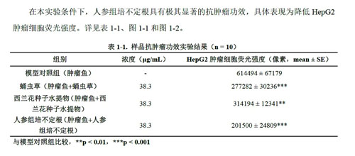 抗肿瘤功效测试中,人参组培不定根潜力突出。其抗肿瘤功效是蛹虫草的1.38倍,是西兰花种子水提物的1.56倍。
