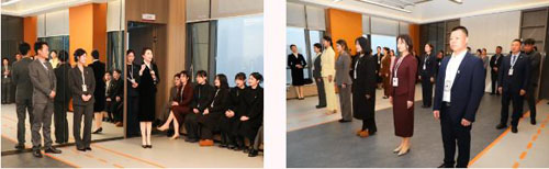 礼行于外,美蕴于中。胡国安董事长在培训尾声作总结发言,为全体伙伴赋能。他同大家分享以下三点:一是,你的形象价值百万。形象绝非简单的穿衣打扮,也包含着一个人对自我的尊重与热爱。唯有内外兼修,让每一次亮相都传递自信与专业,形象才能成为行走的名片;二是,出台(付出)、出彩、出众。“出台”是主动站出来——在工作中多亮相,在他人需要时多援助。唯有不断付出,才华方能被看见;唯有持续耕耘,才能从“出台”走向“出彩”,最终在岗位上“出众”;三是,改变、成长、成就。一个随手关门的动作,一次对同事的主动帮助,都是改变的起点。借公司学习平台淬炼本领,在解决问题中向上生长,便是成长。当努力换来客户认可、家人骄傲、职位提升,成就便悄然降临。