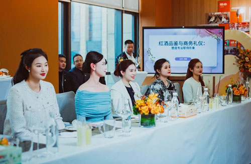 “一瓶酒所蕴含的哲理,胜过世界上所有书籍。”巴斯德的这句箴言,在彩蝶老师的课堂上,得到了生动的诠释。课程从红酒基础知识出发,带领学员走进葡萄酒的类型与分类,建立专业的品鉴认知;在酒杯选择环节,她细致剖析不同杯型的设计原理与适用场景,让学员明白——一只恰当的酒杯,是对酒本身的尊重,也是对席间人的体贴。商务选酒礼仪环节,彩蝶老师结合宴请、洽谈、庆典等不同场景,传授选酒策略与分寸把握;在倒酒与侍酒的实操中,从持杯姿势到倒酒分寸、从敬酒顺序到言行规范,每一个细节都在反复演练中内化为身体记忆。学员们不仅掌握了专业的品鉴方法,更在微醺中体悟到:真正的高级,是在推杯换盏间依然保持的从容与分寸感;而每一次举杯,都是一次慢下来欣赏生活、照见自己的机会。精彩的讲解让学员在掌握品鉴方法的同时,习得商务社交的从容分寸。大家不仅将红酒礼仪内化为职业素养,更懂得——职场中的每一次举杯,都是一次无声的表达;每一分得体的分寸感,都在为专业形象增添值得信任的份量。