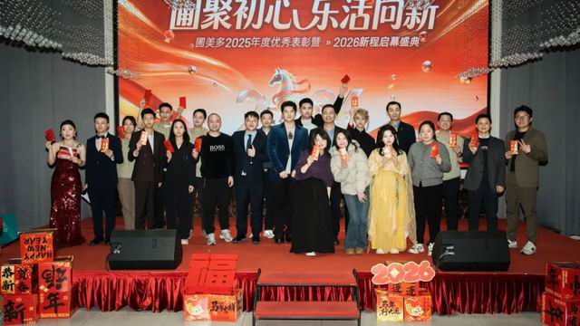 一场热烈非凡的盛典,拉开新岁奋进序幕。2月10日,圃美多乐活“圃聚初心·乐活向新”2025年度优秀表彰暨2026新程启幕盛典在重庆圆满举行,公司领导团队联袂登台演唱,财神送福的互动让现场暖意融融,尽显同心同行、亲如一家的深厚情谊。表彰环节中,“年度优秀员工”“补位协作小马达”等多项荣誉轮番颁出,圃美多乐活总裁陶剑俊先生为徐伟明先生特别颁发的“定海神针奖”更是成为全场亮点,这份认可不仅是对企业发展中坚力量的致敬,更是对未来同舟共济的美好期许。