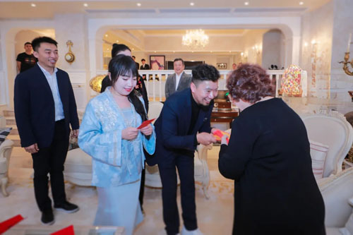 李锦记家族成员亲自到门口迎接,并且按照香港传统习俗,给大家派发新年利是,“利利是是,新年进步!”户外花园里欢声笑语,每一句祝福里,皆是家的暖意。