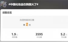 近日,“中国化妆品在韩国火了”的新闻冲上微博热搜。截至目前,话题阅读量超1 9亿,互动量达5 2万。数据显示,2023年中国化妆品对韩国出口额同比大幅上升,在2023年前8个月,中国化妆品对