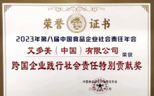 近日,艾多美中国受邀参加由中国食品报社、中国副食流通协会、中国保护消费者基金会主办的“第八届中国食品企业社会责任年会”,并荣获“跨国企业践行社会责任特别贡献奖”。